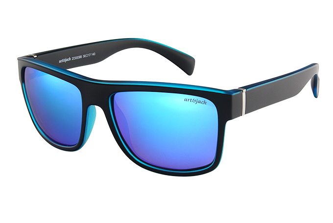 Het tweekleurige kunststof montuur gecombineerd met bijpassend gekleurde spiegelende glazen zorgen voor een hippe moderne look. De hoge kwaliteit glazen zijn gepolariseerd voor optimaal kijkcomfort. Alle Art&Jack zonnebrillen worden standaard geleverd met etui en microfiber brildoekje.
